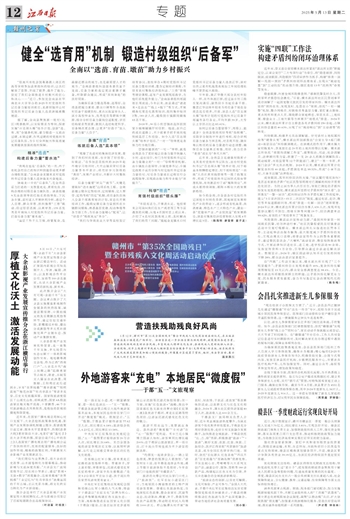 5月12日,赣州市“第35次全国助残日”暨全市残疾人文化周活动启动仪式,在石城县森林温泉小镇莲花广场举行。活动旨在进一步弘扬自强与助残精神,凝聚团结奋进力量,营造扶残助残的良好社会风尚,丰富残疾人精神文化生活,推动残疾人更好地融入社会。活动现场,同步上线赣州市残疾人辅助器具综合服务平台(无障碍版)新系统,该系统将为广大残疾朋友提供更加贴心便捷的服务;外围展示区设置了剪纸、编织、书法等活动,展示残疾人的才艺和创造力。温京燕摄