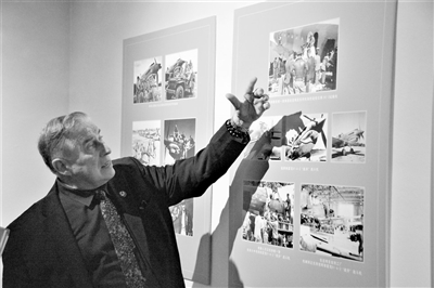 6月24日,美中航空遗产基金会主席杰弗里·格林在参观“铭记英雄——飞虎队主题历史图片展”。