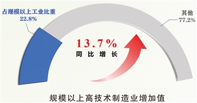“随着科技创新和产业创新融合的持续深入,我省新质生产力不断培育壮大,创新发展的动能更强。”康冬明介绍说,高技术产业已经成为我省经济发展的引领性力量。上半年,全省规模以上高技术制造业增加值同比增长13.7%,高于规模以上工业5.4个百分点,占规模以上工业的比重达22.8%,彰显了产业结构优化升级的良好势头。