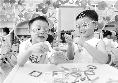 7月16日,会昌县六一保育院暑期爱心托管班上,孩子们在进行手工制作,假期生活充实快乐。