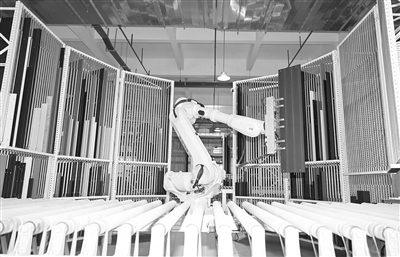近年来,赣州市南康区通过引进优质项目推动家具产业转型升级,向全屋定制、智能家居等领域延伸。图为近日,圣蒂斯堡(赣州)智能家居有限公司生产车间内,机械臂正高效分拣板材。本报全媒体记者 张翰林摄