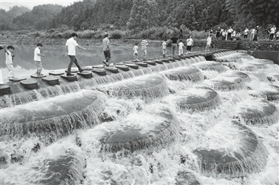 盛夏时节,位于永丰县上溪乡上溪村的上溪河水利风景区成为人们游玩消暑好去处。图为7月27日,游客在风景区赏景休闲。通讯员 刘浩军摄