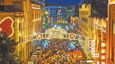 7月25日晚,赣州阳明路标准钟夜市街正式开街,吸引了大量市民前来打卡,现场热闹非凡。该夜市街以标准钟地标建筑为核心,以骑楼建筑群为特色,成为赣州中心城区夜经济的新亮点。通讯员 廖培宇摄