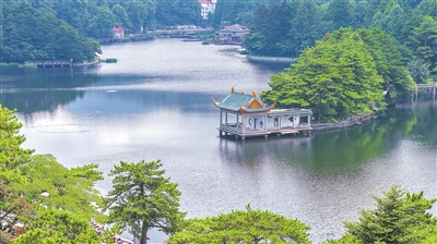 ▲8月3日,庐山风景区,位于庐山之巅的如琴湖在群山环绕中犹如山水国画,吸引各地游客前来观光。