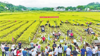 近日,上犹县社溪镇举办“赶超杯”农民健身运动会。镰刀挥动的“唰唰”声、打谷机的“咚咚”声、此起彼伏的欢笑声,交织在江头村的早稻田里,16个村的近百名村民在稻香中比拼农技,共享丰收狂欢。通讯员 王 健摄