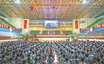 9月3日上午,南昌大学组织全体新生集中观看纪念中国人民抗日战争暨世界反法西斯战争胜利80周年大会现场直播。图为当日,新生在体育馆集体收看。本报全媒体记者 蔡铖歌摄
