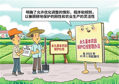 近日,自然资源部、农业农村部联合发布《永久基本农田保护红线管理办法》,对我国永久基本农田划定、管控、保护、优化调整、质量建设等作出具体规定,依法实行严格保护。同时,将建立永久基本农田“优进劣出”的管理机制作为重点,在坚持永久基本农田保护红线整体稳定,确保国土空间规划确定的保护任务不突破的前提下,以整合调整、集中连片、提高质量为目标导向,明确了允许优化调整的情形、程序和规则,兼顾耕地保护的刚性和农业生产的灵活性。