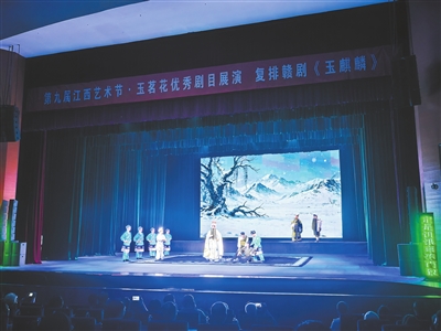 本报南昌讯 (全媒体记者徐黎明)9月18日晚,南昌群星剧场座无虚席,由上饶市广信区信河赣剧演艺有限公司复排的传统赣剧《玉麒麟》,在此参加第九届江西艺术节·玉茗花戏剧节专场展演。该剧故事取材于《水浒传》。演出现场,演员们深厚的唱功、深情的演绎感染了观众,现场不时响起热烈的掌声。