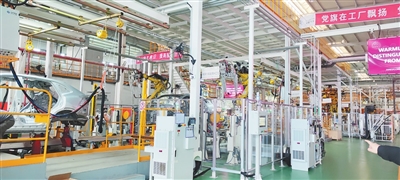 财通供应链工作人员在景德镇新能源汽车出口制造基地考察新能源汽车制造项目。