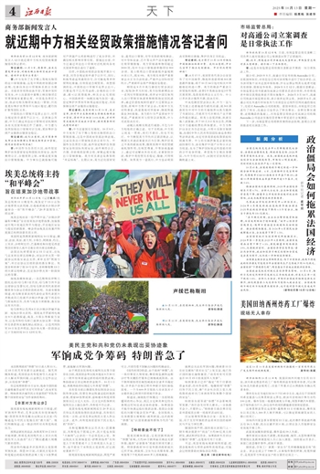 新华社开罗10月11日电 (记者姚兵)埃及总统府11日晚宣布,埃及定于13日在加沙地带停火谈判地、红海海滨城市沙姆沙伊赫举办一场“和平峰会”,“20多国领导人”将出席。