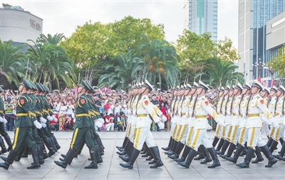 护旗方队踏着铿锵有力的步伐走向升旗台