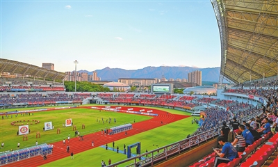 8月10日,赣州市全民健身中心体育场,球迷陆续走上现代化的体育场看台入座,当天到场的球迷超过4万名。