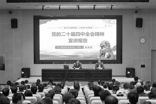 11月12日上午,学习贯彻党的二十届四中全会精神省委宣讲团报告会在省投资集团举行。