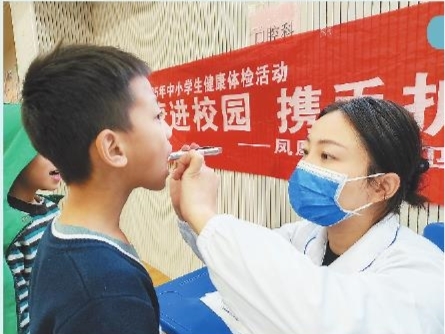 10月28日至11月10日,江西省儿童医院联合南昌市红谷滩区卫生健康委、凤凰洲街道办事处,共同开展“医社联动・守护未来”儿童健康关爱行动,为碟子湖学校、昌北小学等四所中小学近5000名学生提供公益体检。医院组建多学科团队,采取“进校园、分时段”的错峰体检模式,通过“一对一”诊疗方式,为学生完成“一站式”检查,并对异常结果及时反馈学校。