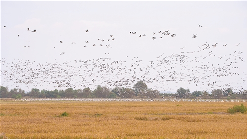 11月13日,余干县康山垦殖场插旗洲分场,数万只鸟集群盘旋、振翅齐飞。江西鄱阳湖国家级自然保护区管理局余干保护监测站数据显示,截至当日,鄱阳湖余干水域共记录到水鸟37种,比去年同期多7种,数量共计54747只。本报全媒体记者 朱兆恺摄