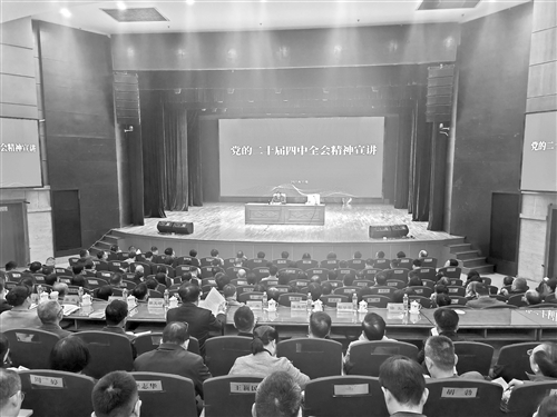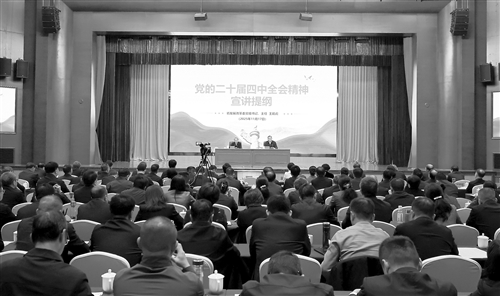 11月17日上午,学习贯彻党的二十届四中全会精神省委宣讲团报告会在吉安市举行。省委宣讲团成员,省发展改革委党组书记、主任王前虎作宣讲报告。