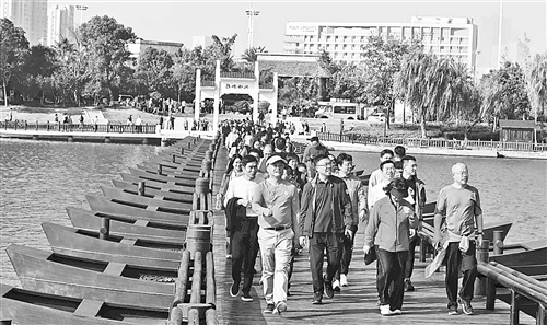 11月15日,在豫章书院浮桥,众多市民在此信步游览,感受象湖生态之美。本报全媒体记者 周 霖摄