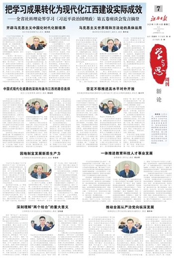 编者按 11月13日,全省社科理论界学习《习近平谈治国理政》第五卷座谈会在南昌举行。来自省内社科理论界的8名专家学者,围绕第五卷的丰富内涵、核心要义和精神实质等进行了深入交流。现按发言顺序刊发座谈会发言摘要,以飨读者。