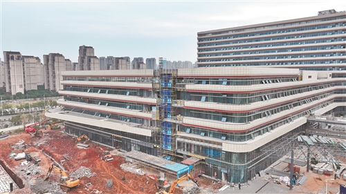 近日,由中建一局承建的重庆医科大学附属儿童医院江西医院(二期)项目施工现场一派繁忙景象。据了解,该项目位于南昌市红谷滩区,预计12月底完工,建成后将成为集医疗、教学、科研于一体的国家区域医疗中心。本报全媒体记者 王蕴蓉摄