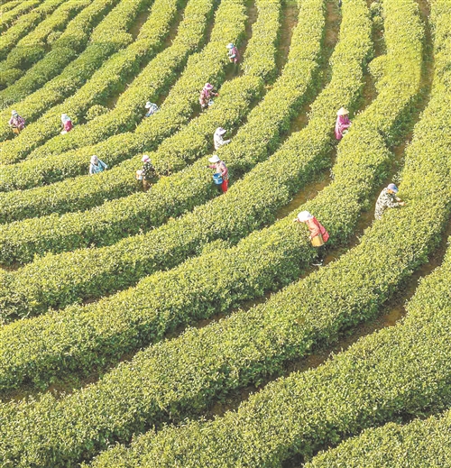 茶农在东林雨露五老峰基地采摘春茶 陈飞林摄