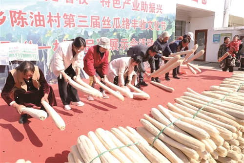 11月20日,抚州市临川区嵩湖乡陈油村举办第三届丝瓜络丰收文化节暨“一村一品”展示会活动,吸引了附近游客和村民现场观看。近年来,在抚州医药学院乡村振兴工作队的大力帮扶下,陈油村发展太空丝瓜络种植产业,带动种植户、村集体增收,并形成“丝瓜络经济”辐射效应,带动周边乡镇增加种植面积几百亩,已成为当地特色产业。 丁嗣成摄