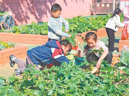 近日,南昌市育新学校教育集团扬子洲校区二年级学生走进学校的“竞耕苑”,开启了一场充满喜悦的劳动采摘之旅。 本报全媒体记者 侯艺松摄