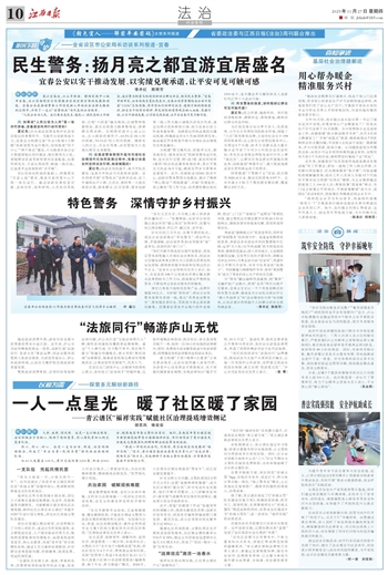 莫以宜春远,江山多胜游。赣西区域中心城市宜春,正以其独特区位优势激活宜游宜居宜商的发展新动能。宜春公安在推动警务工作深度融入市域社会治理大格局的过程中,淬炼了一支以“宜警标兵”为代表的公安铁军。