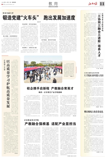 积极答好“教育强国,高校何为”时代命题,学校党委深入推进“双融双育”,实现党建与社会服务双向赋能,推动学校连续3年获评省管高校综合考核第一等次。瞄准“高精尖缺”领域,攻坚多项基坑工程绿色高效支护与止水加固技术,获国家技术发明奖二等奖。聚焦山区城镇和交通基础设施安全与防灾减灾等国家重大需求,成功牵头组建“山区土木工程安全与韧性”全国重点实验室,为中部地区崛起和区域经济高质量发展提供坚实的科技支撑。聚焦国家稀土战略,杨辉教授作为首席科学家牵头获国家重点研发计划项目立项,项目总经费3133万元,项目成果“稀土冶炼全流程一体化控制关键技术及应用”获江西省科学技术发明奖特等奖,项目成功应用于中稀江西稀土有限公司、赣州晨光稀土新材料有限公司等稀土冶炼头部企业,有效提升企业生产效率和产品合格率,降低原材料和能源消耗,近三年累计销售收入41.66亿元、利润3.93亿元。聚焦行业大发展,瞄准我国铁路基础设施智能施工装备、数字化和智能化施工技术及集成应用平台的创新发展,罗文俊教授牵头获批“十四五”国家重点研发计划“交通基础设施”重点专项——“铁路基础设施无人工地技术集成应用”项目,支持交通强国建设发展需求。聚焦地方大产业,新增机械工程一级学科博士学位授权点和全省首个服务江西万亿级电子信息产业的电子信息博士专业学位授权点,强力支持江西省制造业重点产业链现代化建设“1269”行动计划重点产业链高质量发展。(徐长节)
