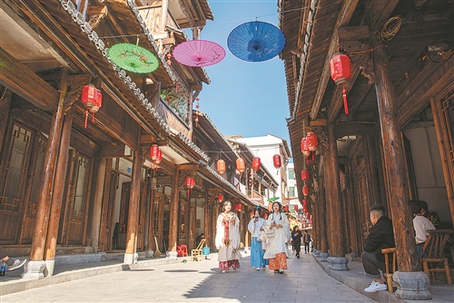 近年来,洋口镇充分发挥文化旅游资源优势,紧紧围绕“上饶市建设世界旅游目的地”的战略目标,立足千年商埠底蕴,以“文化解码、全域焕新”为路径,创新探索古镇文旅融合发展模式。通过系统修缮明清古街、翁家大厅等历史建筑集群,打造沉浸式文化体验场景。创新实施“微改造、精提升”工程,将非遗展演、传统庙会等民俗元素植入现代旅游业态,培育出“舌尖洋口”美食街等文旅IP。深化“旅游+工业”产业融合,并发展休闲农业观光带,建设电商直播基地推动马家柚、洋口粉干、海参饼等特产转化旅游商品。