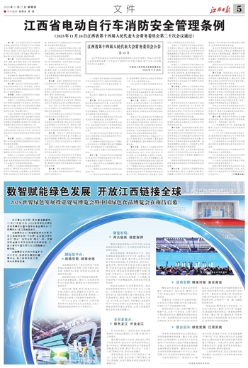 江西省电动自行车消防安全管理条例 (2025年11月26日江西省第十四届人民代表大会常务委员会第二十次会议通过) 2025年11月27日