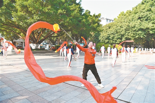 近年来,赣州市采取城市微更新、见缝插绿等方式,打造便民惠民的休闲空间,建设口袋公园等。图为市民正在公园里锻炼身体。 通讯员 欧艳芬摄