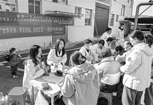 11月22日,万年县人民医院组织医务人员来到裴梅镇,为当地村民开展送医送药送健康活动。特约通讯员 徐声高摄