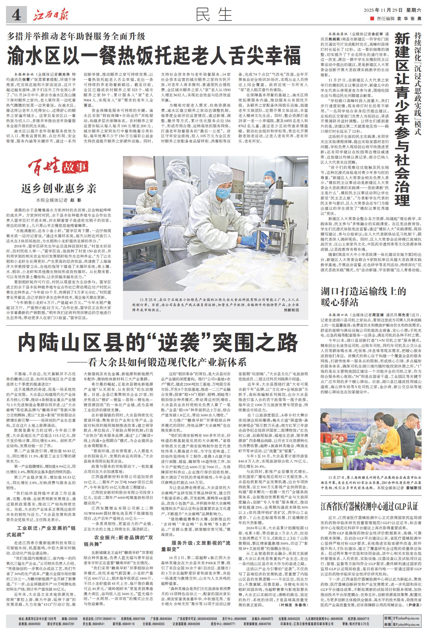渝水区以一餐热饭托起老人舌尖幸福