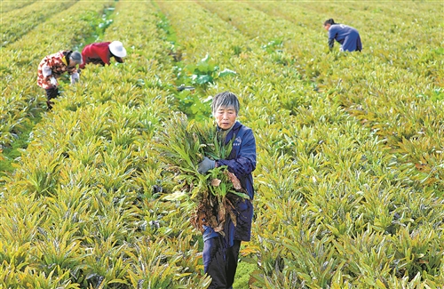 1月3日,泰和县塘洲镇洲头村有机蔬菜种植基地,农民正在采收蔬菜,保障冬季蔬菜市场供应。 通讯员 邓和平摄