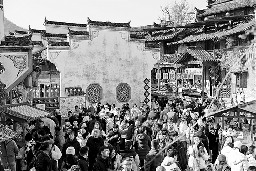 元旦假期,我省各景区人流如织,图为游客在婺源篁岭景区游玩。本报全媒体记者 李 征摄