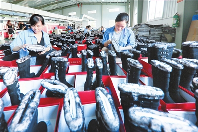 8月1日,万年高新技术产业园区,万年世泰鞋业有限公司生产线上一片忙碌,工人们冒着高温天气在赶制订单。炎炎夏日,万年县工业企业通过采取安装空调和大功率排风扇、错时上班等措施,为广大员工营造良好的工作环境,确保高温季节企业稳产高产,促使全县工业继续保持良好发展势头。通讯员 徐声高摄