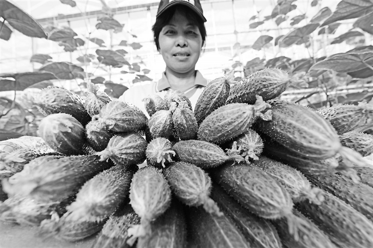 8月7日,在泰和县现代农业科技产业园,员工在无土栽培蔬菜大棚内采摘黄瓜。近年来,泰和县深入实施乡村振兴战略,扎实推进农业供给侧结构性改革,积极发展科技型现代农业,带动就业,促农增收致富。通讯员 邓和平摄