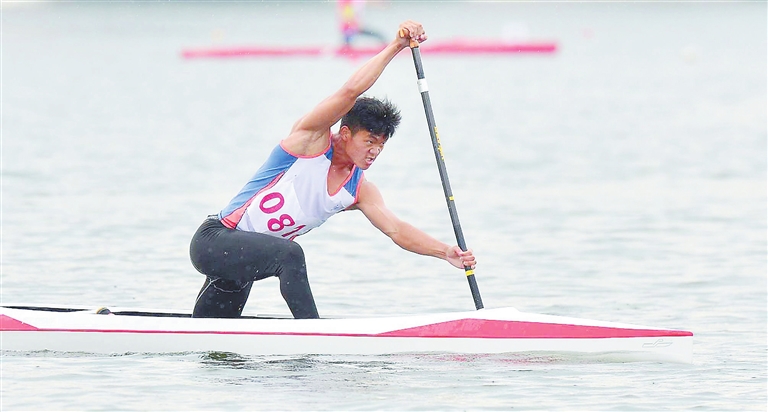 9时30分,社会俱乐部组男子1000米单人划艇比赛鸣金开锣。处于第四道的左有民一改前天5公里单人划艇赛仅获第四名的颓势,起航阶段奋力划桨,一举奠定优势,在途中、加速中按照教练赛前战术部署,合理分配体能。最后250米,左有民释放全部能量,将领先优势扩大至一个身位以上。