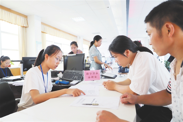 8月8日,大余县行政服务中心教科体局学生资助管理中心窗口,一名大学生正办理生源地信用助学贷款。开学在即,该县提高办贷效率,确保贫困学子圆大学梦,目前已为880名学生累计办理助学贷款700多万元。通讯员 叶功富摄