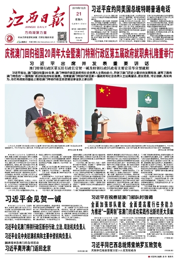 庆祝澳门回归祖国20周年大会暨澳门特别行政区第五届政府就职典礼隆重举行