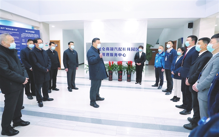 离开港区,习近平前往宁波北仑大碶高端汽配模具园区,考察中小型民营制造业企业宁波臻至机械模具有限公司,听取企业生产经营及复工复产情况介绍。习近平来到生产线旁,同工人们亲切交谈,询问大家返岗途中是否都顺利、复工后生产生活上还有哪些困难、工资发放是否正常。习近平指出,大家克服疫情影响,及时返岗复工,既是为企业好、为国家好,也是为自己好。企业正常生产就能保障国家经济正常运行,就能给大家创造就业机会,大家有收入,家里就有了保障。习近平强调,我国中小企业有灵气、有活力,善于迎难而上、自强不息,在党和政府以及社会各方面支持下,一定能够渡过难关,迎来更好发展。