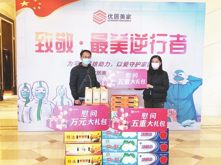 疫情期间,优居美家物业开展从家庭、社区到社会的一体化防疫模式。为关爱一线,优居美家物业在力高国际城项目举办“致敬·最美逆行者——为平凡英雄助力,以爱守护家园”活动,向奋战在一线的医护人员业主及家属送上大礼包,并为一线医护人员业主排忧解难。