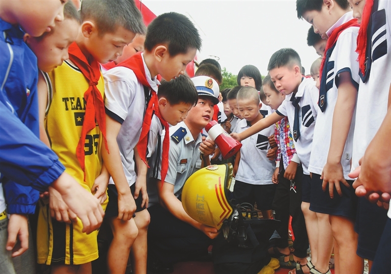 为全面提高师生消防安全意识和逃生自救能力,9月11日,鹰潭市消防救援支队龙虎山景区大队,走进鹰潭消防龙虎山希望小学开展系列消防安全教育活动。图为消防安全教育活动现场。本报记者 钟海华摄