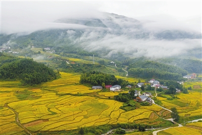 压题图:9月20日,奉新县澡溪乡官田村雨后的田野稻穗金黄,云浮青山,好一幅美丽田园画卷。本报记者 燕 平摄