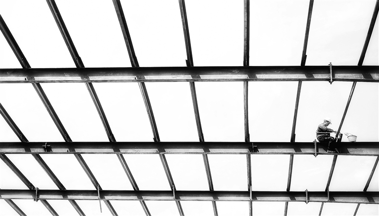 9月15日,抚州市东乡经济开发区工厂项目建设基地,工作人员在架设仓库钢梁。当地立足标准化建设,打造智能化、集约化工业园区,吸引了电子智能、材料科技等一大批企业入驻。