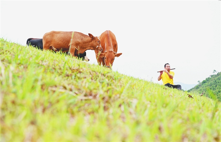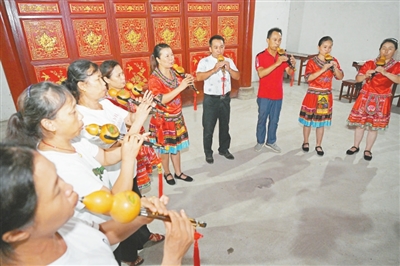 “这个叫指震音……这个叫气震音,就是不动手指,使气流均匀而规则波动所产生的一种颤音效果……”9月9日傍晚,王明芳像往常一样,准时来到水溪村委会旁的祠堂,免费培训18名农民乐队队员。种了60亩田的农妇陈金莲说,当天她收了100多袋稻谷,很辛苦,但晚上还是坚持来学习音乐、舞蹈,每次上课风雨无阻。水溪村乡民乐队队长王香花开心地说:“从2016年开始,我们跟着王老师学习了竹笛、巴乌、葫芦丝、口琴等乐器,一改以往打牌、打麻将的习惯。我们的乡村生活,因为音乐变得更加充实而快乐!”