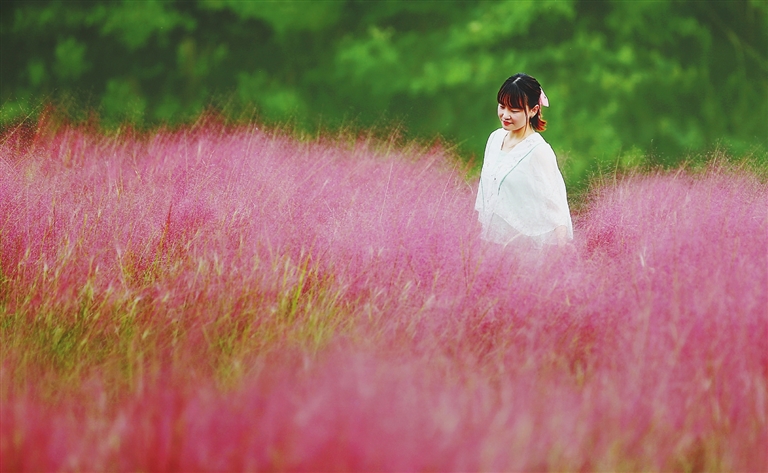 9月15日,位于南昌县黄马乡的南昌凤凰沟景区,成片的粉黛乱子草绽放,形成连绵的粉色花海,吸引了许多游客前来游玩拍照,徜徉其中。本报记者 徐 铮摄