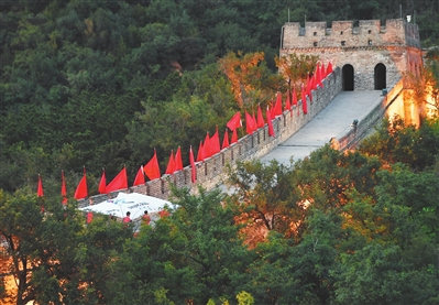 ▲9月20日,旗手们在长城上传递北京2022年冬奥会会旗。 当日,北京冬奥组委在北京市延庆区八达岭长城举办北京冬奥会倒计时500天长城文化活动,这是“冬奥新航程 一起500天”——北京冬奥会倒计时500天系列活动之一。新华社发