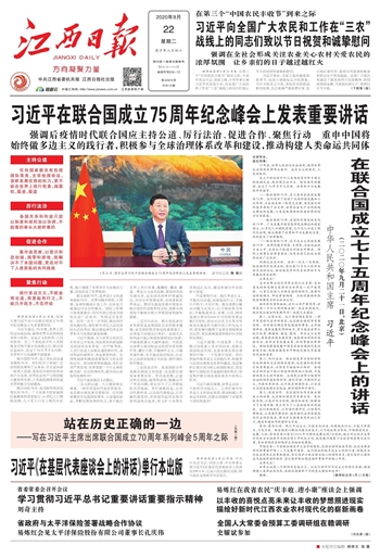 习近平在联合国成立75周年纪念峰会上发表重要讲话