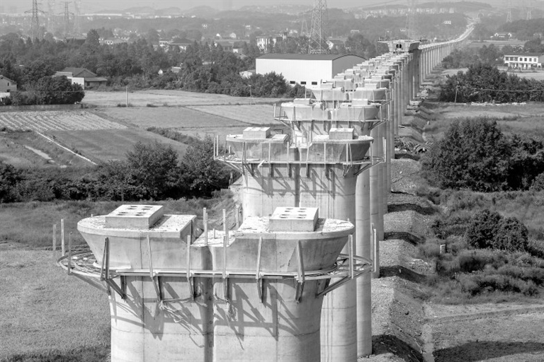 目前,常(德)益(阳)长(沙)铁路益长段进入架梁高峰。常益长铁路正线全长约157公里,设计时速为350公里,是国家“八纵八横”高速铁路网的重要组成部分,其中益长段正线全长约65公里。新华社发